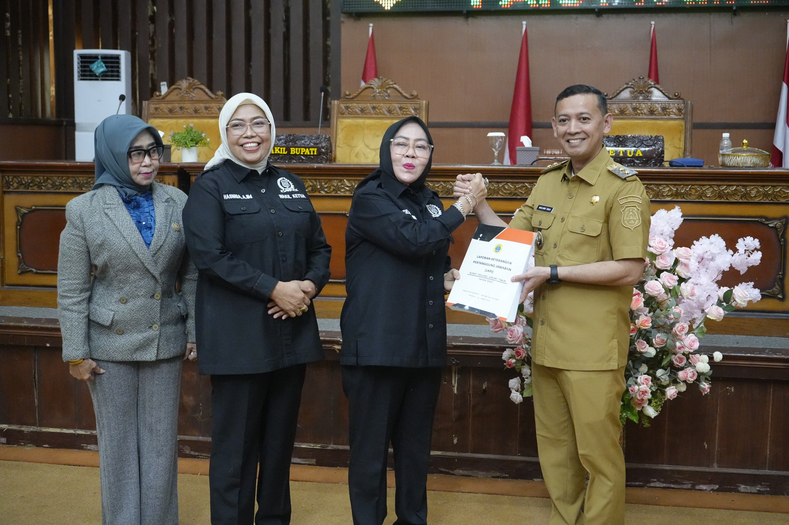 Paripurna tersebut dipimpin Ketua DPRD Tanjabtim, Hj. Zilawati, SH, didampingi Wakil Ketua I Hasnibah, A.Md dan Wakil Ketua II Hj Siti Aminah SE, serta dihadiri para anggota DPRD. Turut hadir unsur Forkopimda, para kepala organisasi perangkat daerah (OPD) serta perwakilan OPD di lingkungan Pemerintah Kabupaten Tanjabtim.